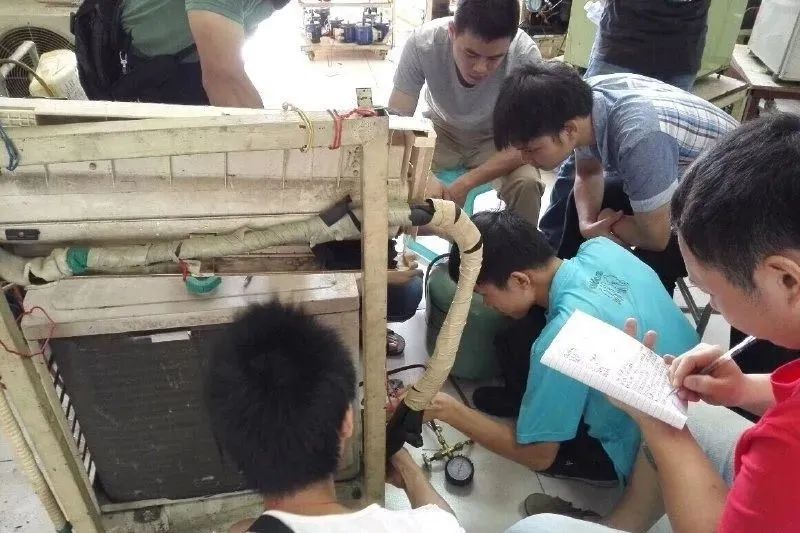 由于空調(diào)器內(nèi)有制冷劑,在維修過程中可能泄漏,泄漏的空調(diào)器制冷劑明火會生成有害氣體。因此拆裝空調(diào)器應(yīng)選擇通風(fēng)的工作場所,并注意做好防火。