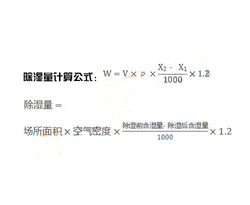 除濕量=場所體積×空氣密度×(除濕前含濕量-除濕后含濕量)/1000×1.2