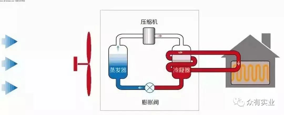 主要是通過室外機吸收空氣中的熱量,通過管道中的制冷劑循環,將吸收的熱量,帶到室內機,在通過室內機的工作,將熱量提供給室內,使室內溫度提高。