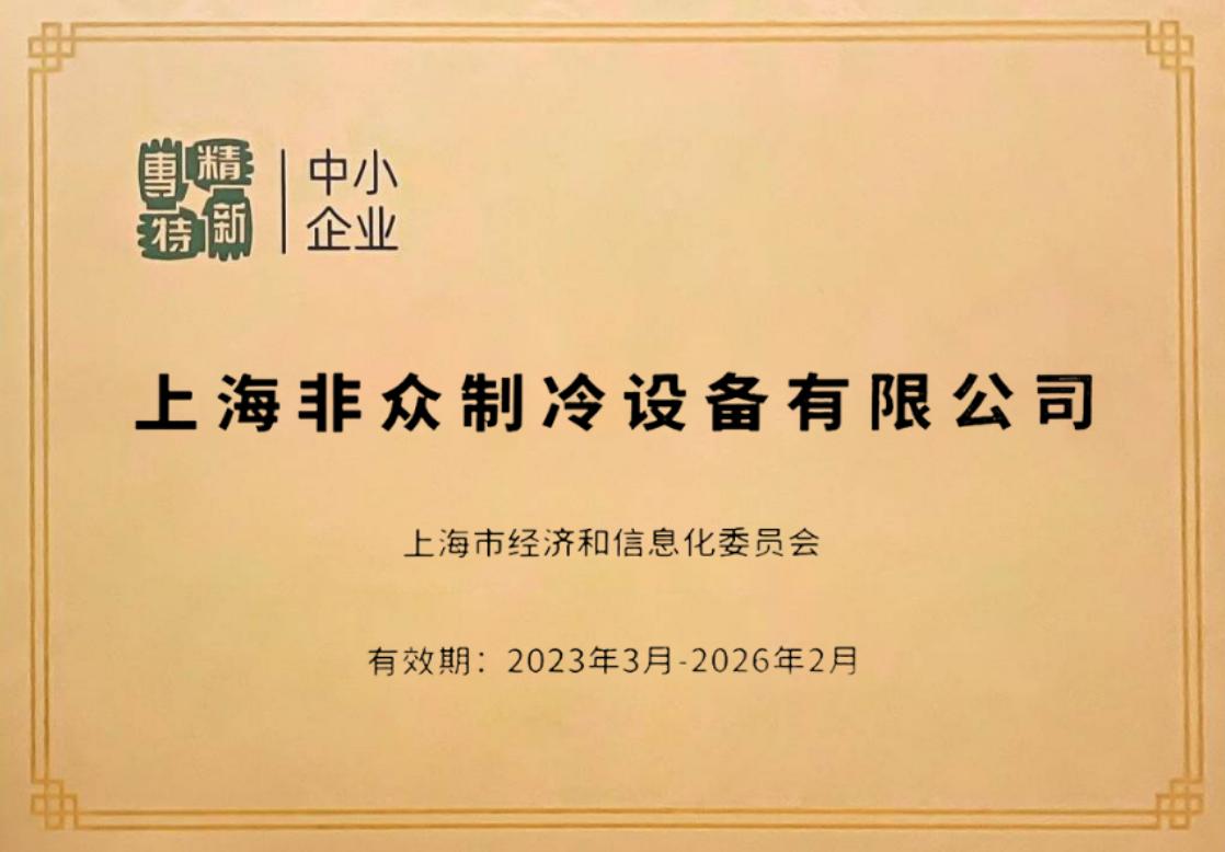 近期,上海市經(jīng)濟(jì)和信息化委員會公布2023年上海市專精特新中小企業(yè)(第二批)名單,非眾制冷榜上有名。公司子公司上海非眾制冷設(shè)備有限公司經(jīng)審核認(rèn)定為 "2023 年度第二批上海市專精特新中小企業(yè) "。非眾制冷將在相關(guān)政府部門的扶持與指導(dǎo)下,為溫濕度系統(tǒng)解決方案領(lǐng)域的研發(fā)、產(chǎn)品創(chuàng)新等方面持續(xù)發(fā)力發(fā)展。