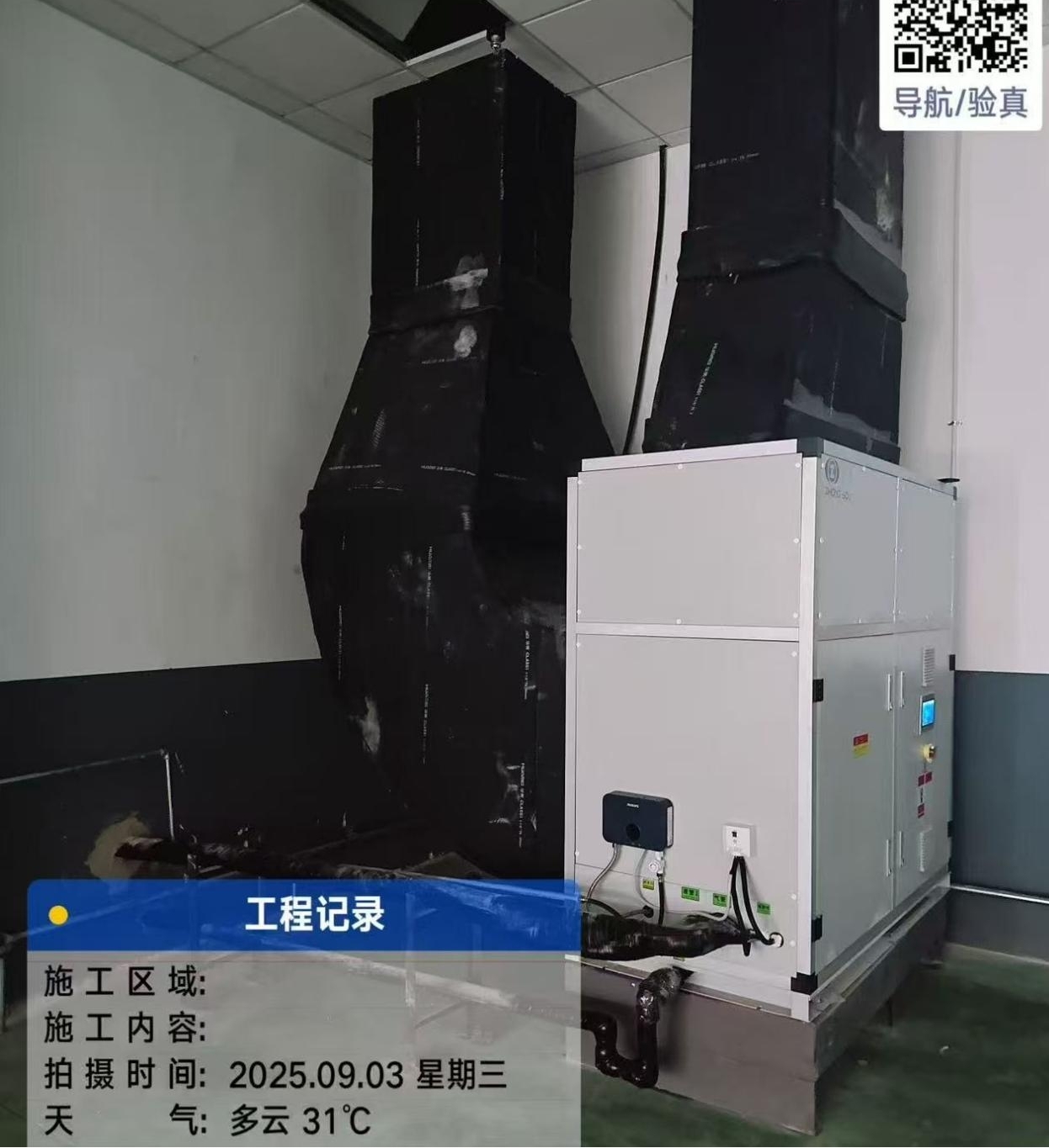 該項目對廠房溫濕度有較高的要求,房間內(nèi)有風(fēng)機(jī)盤管降溫,溫度20℃, 精度±2.0℃,濕度65%, 精度±2% 。為滿足這一需求,我司為廠房設(shè)置了一套變頻恒溫恒濕機(jī)組系統(tǒng),并選用了變頻風(fēng)冷恒溫恒濕機(jī)組HF45WBP作為主備設(shè)備。