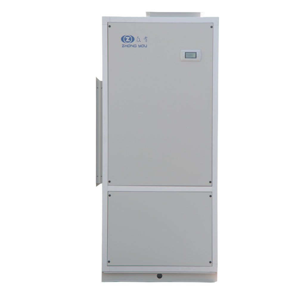 6. 一機多用,溫度控制范圍廣(5~32℃),全年運行效率高。留有新風換氣機接口,用戶可配置新風換氣機,在過渡季節(jié)和冬季,機組可自動將室外的低溫空氣引入室內(nèi),以達到換氣和降溫的目的,同時也可以減少主機的運行時間,以達到節(jié)能的目的。該特點特別適合于過渡季節(jié)需要換氣、冬季需要降溫的場合。